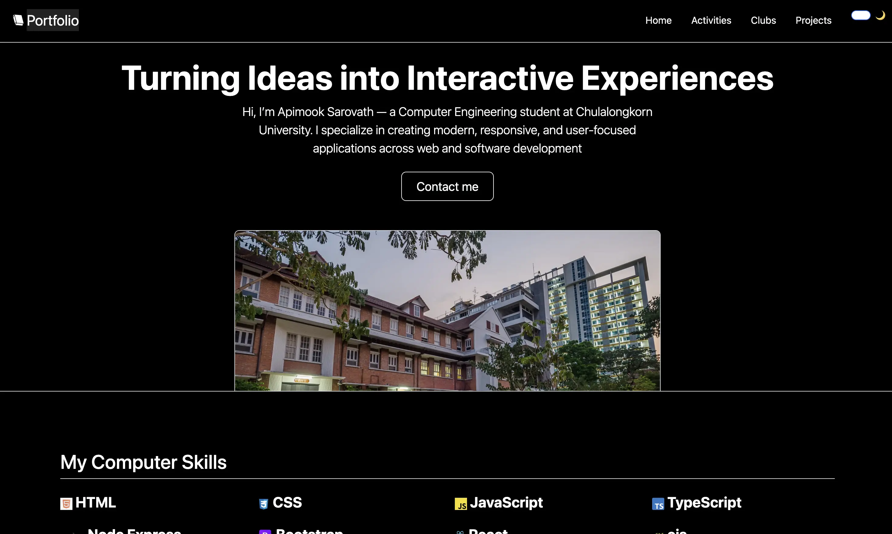 Responsive portfolio showcasing my projects, activities, and contact info.
