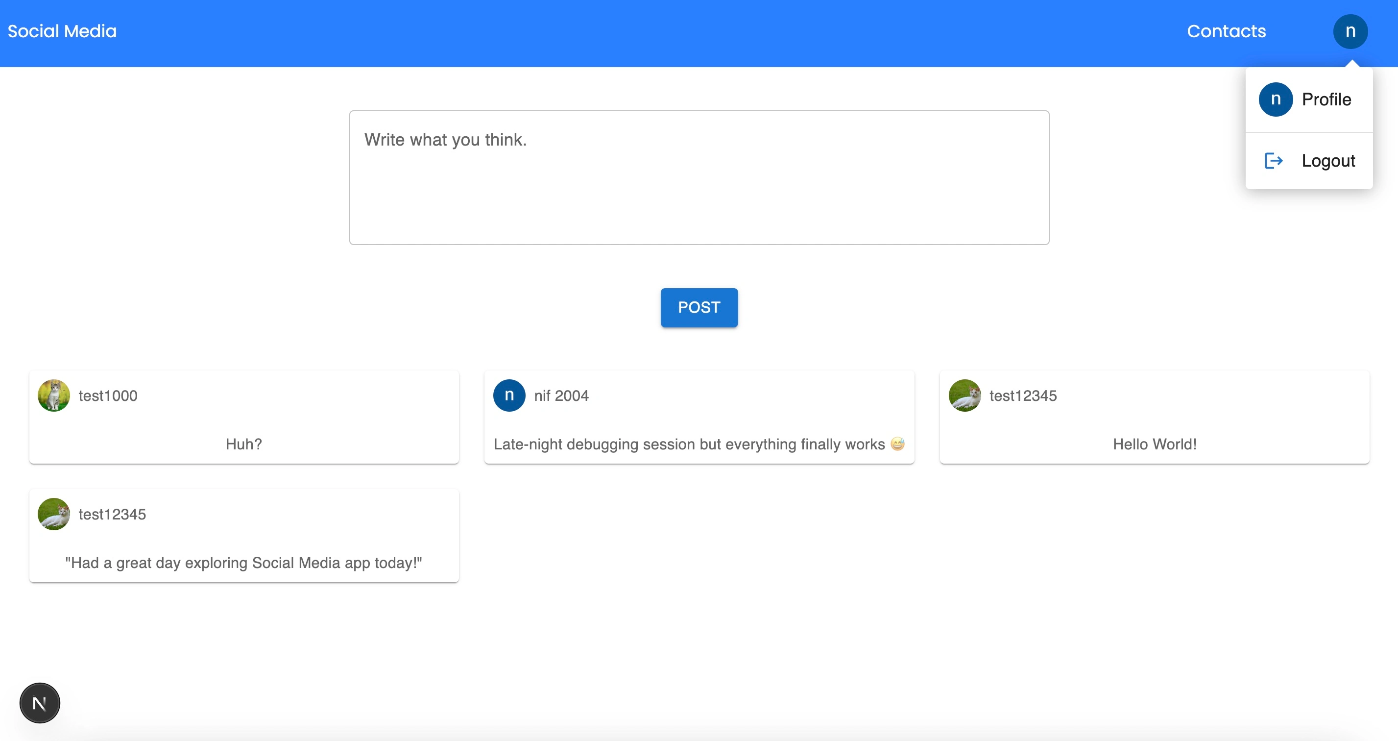 A minimal social media app I built to practice real-world auth, real-time data and data modeling with Supabase + Prisma.